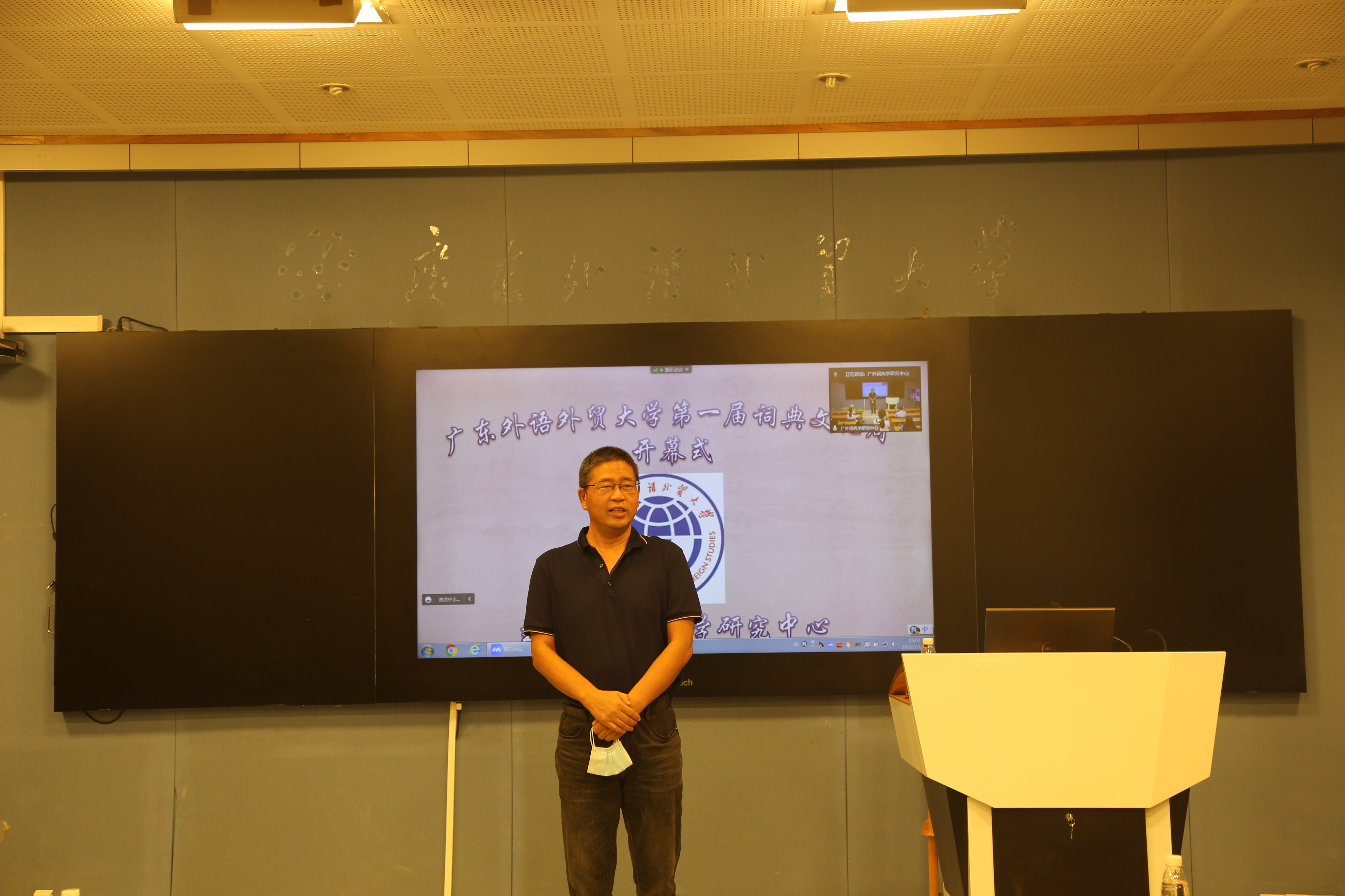 2022年10月23日下午3点,广东外语外贸大学词典学研究中心采取线上线下结合的方式迎来了第一届词典文化周的开幕式。本次开幕式由词典学研究中心承办,由中心主任田兵教授主持。开幕式伊始,田兵教授向线上线下出席文化周活动的各位老师和同学们简要介绍了文化周的五个模块,分别是:讲座、词典展、游戏、演讲比赛、观影,接着重点介绍了广外词典学中心以及广外词典学的发展情况。