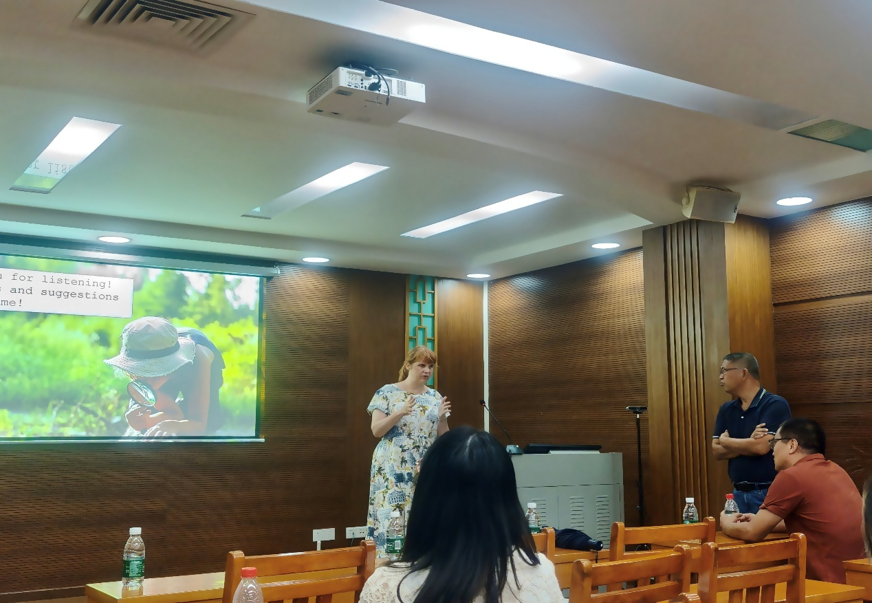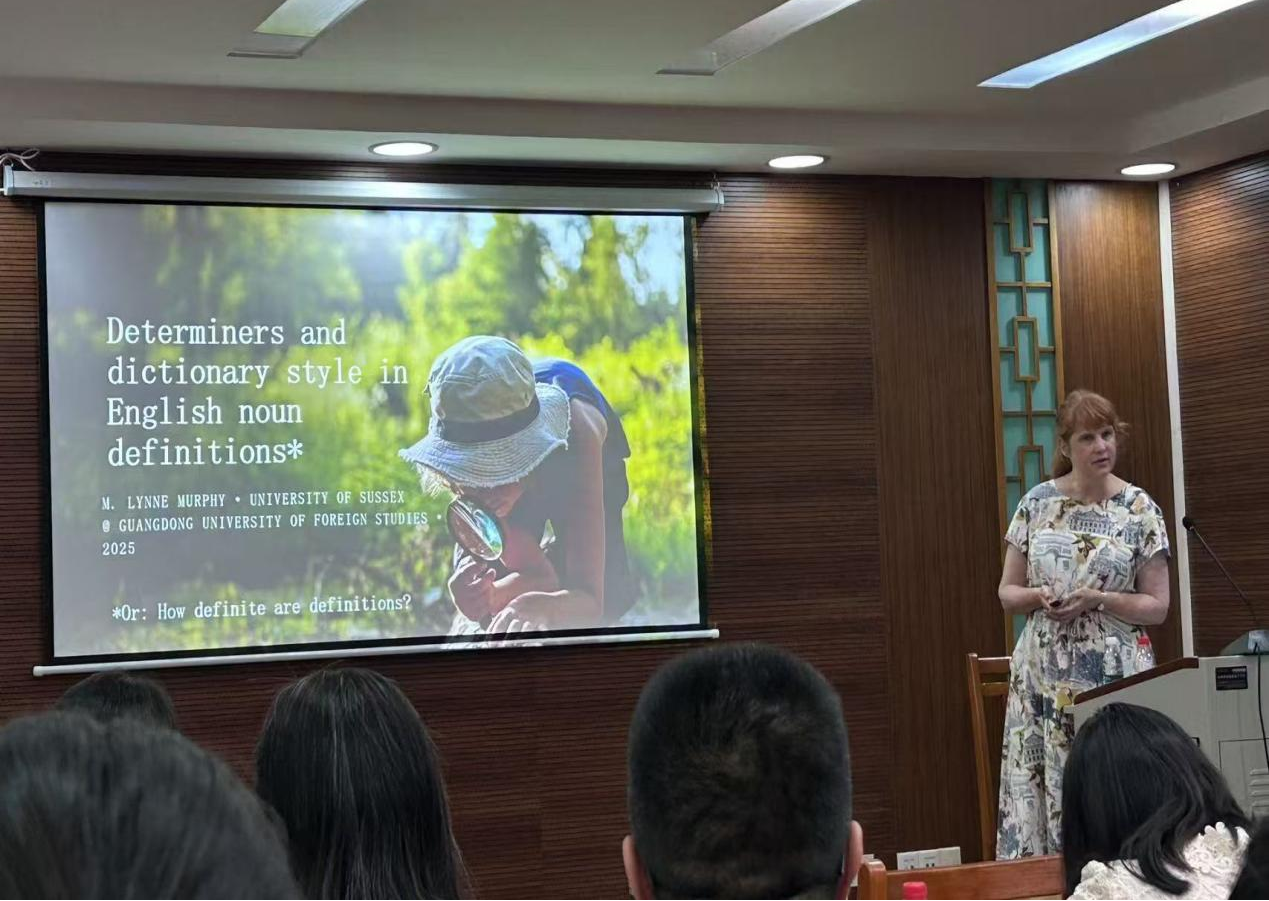 外国语言学及应用语言学研究中心/词典学研究中心海外名师讲坛第一场讲座在白云山校区8教 306 教室顺利开展。词典中心老师、硕士生和博士生同学们悉数到场,田兵教授作为主持人致词,对Murphy教授进行了介绍,随后老师和同学们对Murphy教授表示了热烈的欢迎。在师生们期待的目光中,Murphy教授微笑着开始演讲,一场思想的探索之旅正式启程。