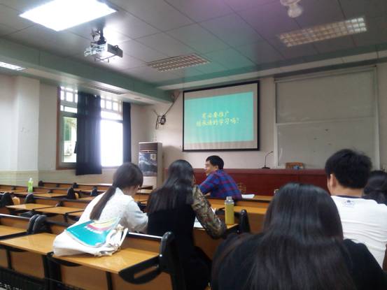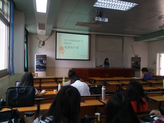接着,刘小芹同学给大家展示了题为“慕课的介绍”的一种新型网络课堂。她对慕课的发展历程做了简单的介绍,指出了慕课和网络公开课堂的不同之处在于网络课堂是传统实际课堂的录像,而慕课则是理想课堂的重现,慕课能激发学生的参与感。她还介绍了慕课的特征,主要平台,中国的慕课情况和慕课的学习经验,所有的介绍即新颖又有趣,令同学们耳目一新。