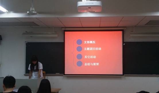 最后团委副书记李婷进行了工作的总结和感谢。其中李婷副书记还特别夸奖了词典学中心的准备材料非常完整和充实。在优美的校歌中红旗团支部评选大会完美落幕。