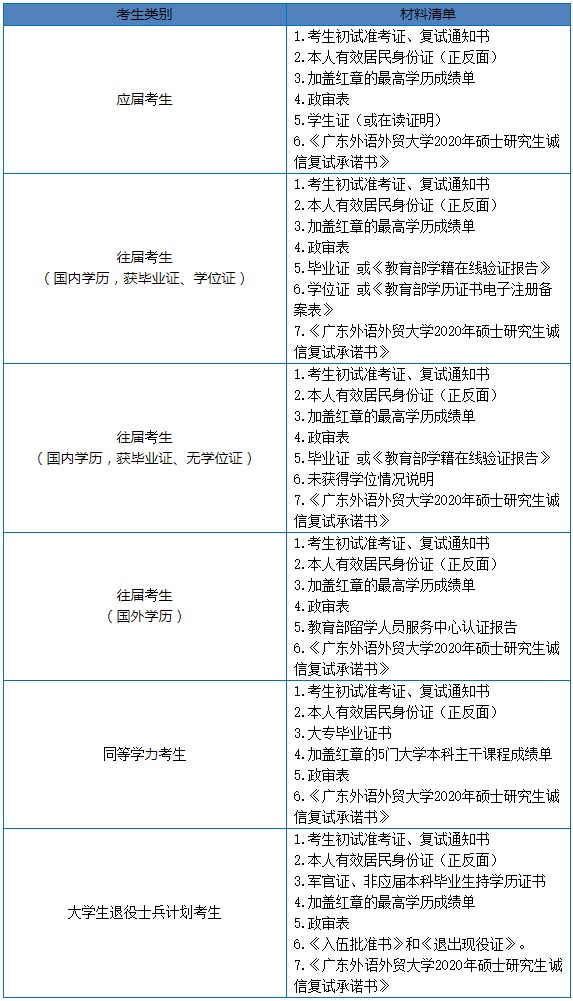1.《广东外语外贸大学报考攻读硕士学位研究生政治审查表》和《广东外语外贸大学2020年硕士研究生诚信复试承诺书》请在附件下载;